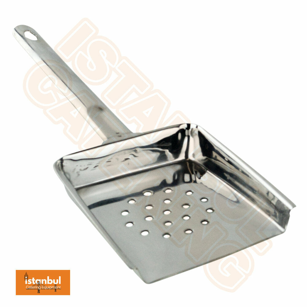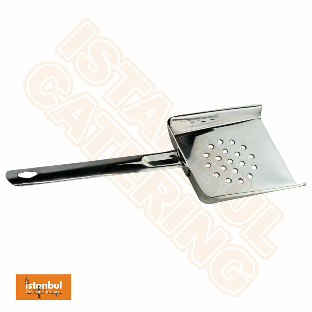 With its high resistance to staining, this chip scoop maintains an excellent finish, making it a durable and long-lasting tool in your kitchen arsenal. The drainage holes in the scoop allow for efficient draining of excess moisture, ensuring that your fries or chips stay crispy and delicious.